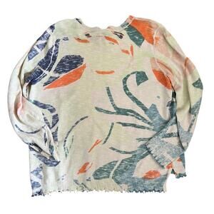An abstract, nature-inspired print that's filled to bursting with little details. We love the fringe along the hem and arm openings that add character and dynamism to the look. The pattern has also been printed inside the sweater, for more color and pattern integrity that holds up when people get a peek up your sleeves. In a soft cotton blend and a timeless pullover sweater shape.