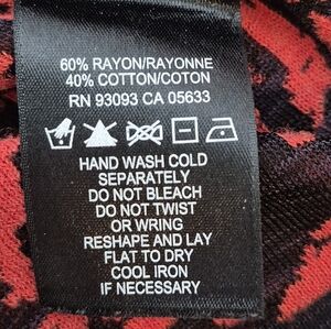 - Vibrant colorblock animal print with black side panels, which gives a slimming illusion