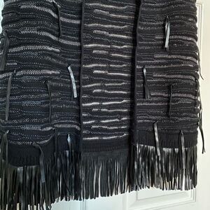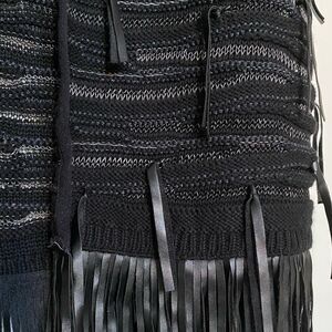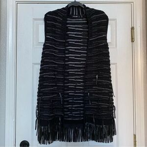 Nic + Zoe Belted Fuse Black Metallic Fringe Open Front Vest Sweater, Size S