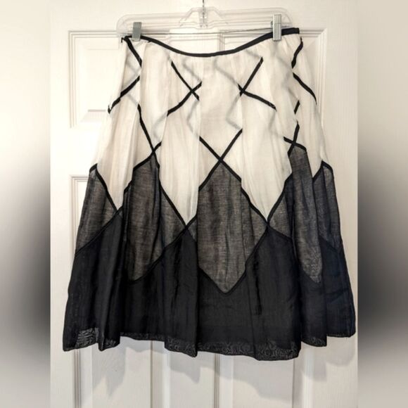 Nic & Zoe Black and White layered side zip A-Line flowy goz midi skirt size 8