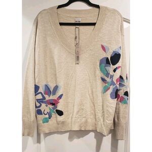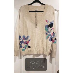 Nic + Zoe Blooming V Neck Sweater Size 1X Lightweight Floral NWT
