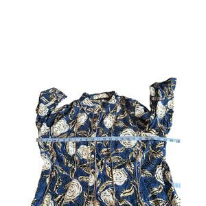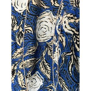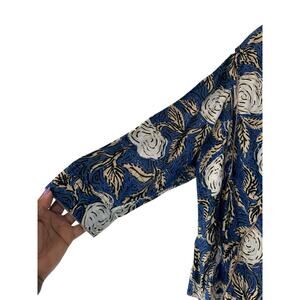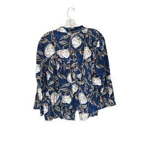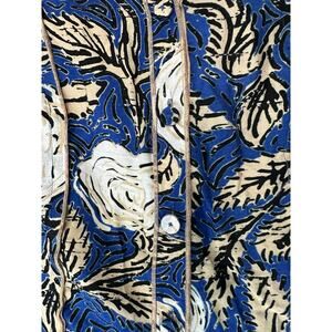 Nic + Zoe Blouse Blue Tan Button Up Short Sleeve Silk Blend Lightweight Size XL