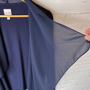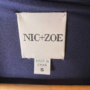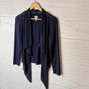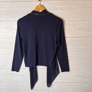 Nic + Zoe Blouse Womens Size Small Navy Long Sleeve Mixed Media Sheer Modern