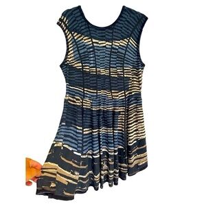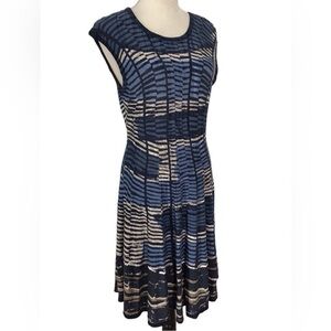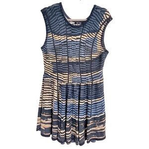 Nic & Zoe Blue Beige A-Line Retro Sweater Sleeveless Knit Knee-Length Dr…