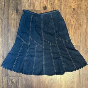 Nic + Zoe Chambray Boot Flare Western Dark Blue Knee Length Skirt Sz 6 Prairie