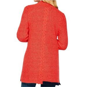 Nic + Zoe Cozy Cables Cardigan Open Front Soft Sweater Coral Navy Tan Size Large
