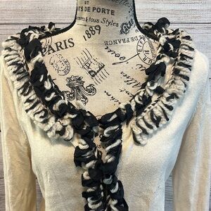 Nic + Zoe Cropped Cardigan Sweater Shrug Yarn Trim Size Petite Large