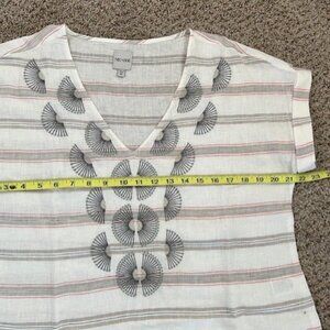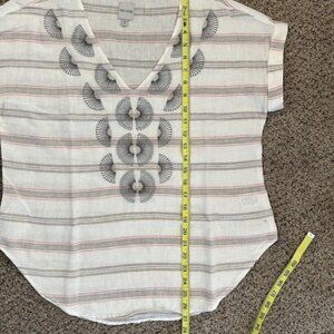 Nic & Zoe Embroidered Stripe Top - Neutral Multi color