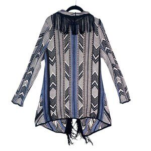 Nic + Zoe Fringe Long Sleeve Open Front Cardigan Striped Multicolor Size M NWT