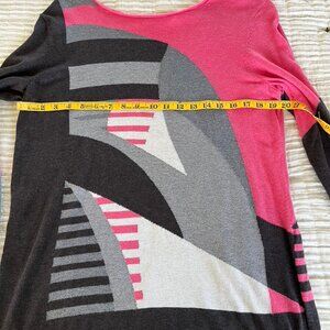 Lightweight colorful tunic sweater by Nic + Zoe. Black, greys, white and pink colors in geometric blocked design. 70% cotton and 30% lyocell. In good condition. Smoke and pet free home.