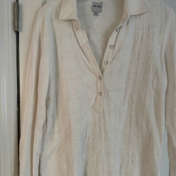 Nic & Zoe Ivory Collared Shirt Size Medium
