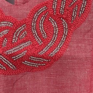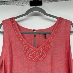 Nic + Zoe Linen Blend Shift Dress Women's Size XL Coral Embellished
