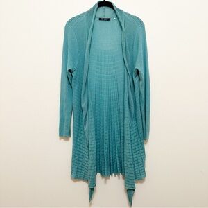 Nic + Zoe Longline Open Duster Cardigan Knit Size Medium aqua