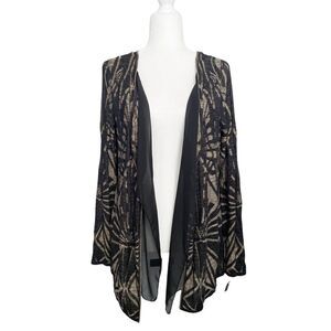 Nic + Zoe Open Front Cardigan Black Gold Lightweight Sheer Size L