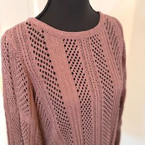 Nic + Zoe sweater in excellent used condition. Mesh design with tie detail on the sleeves. Style is 'Picture Perfect'. Gorgeous plum color. Excellent condition. Super soft chenille fabric.