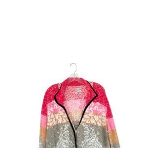 Nic + Zoe Pink Blue Tan Casual Lagenlook Soft Cozy Button Up Cardigan Size Large