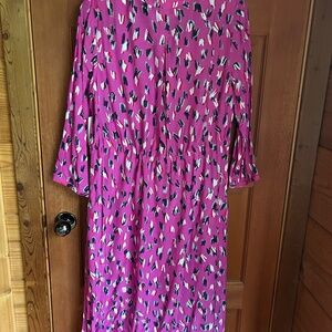 Nic + Zoe viscose dress. Midi-length. Button front with drawstring waist. 3/4 sleeves. In-seam side pockets. Pink with black/white/gray abstract print. Size medium. Brand new/tags attached.