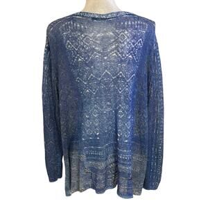 Nic + Zoe linen blend cardigan sweater. Button front. Blue, grey, and white pattern. Size 2X. Preowned, no flaws.