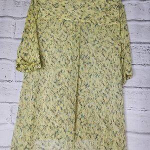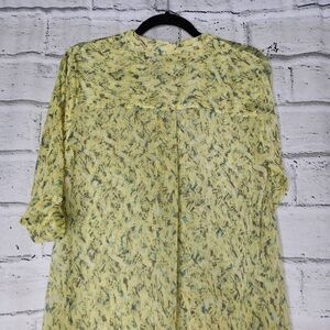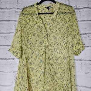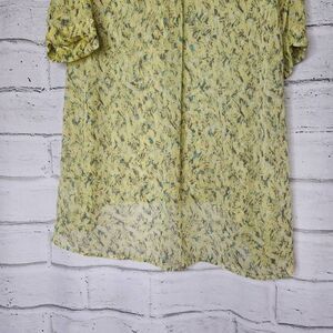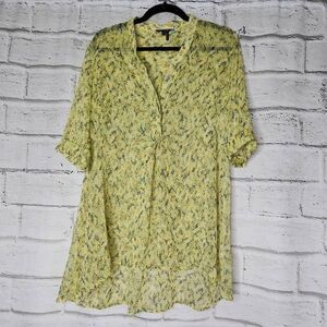 Nic + Zoe Printed Split V-Neck Hi-Low Hem Tunic Top Yellow Small