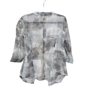 Nic + Zoe Sheer Open Jacket Grey Geometric Lightweight SZ M Casual Toile Fabric