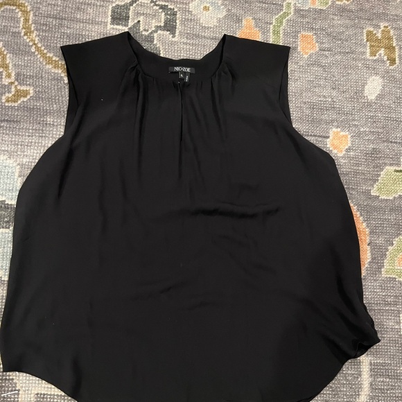 109% polyester that feels and looks like silk. This blouse looks great under a sweater or a suit, or can be worn alone. Armpit to armpit is 22 and length is 27. Like new condition!