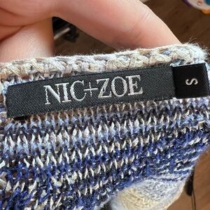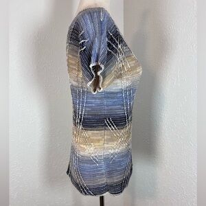 Nic + Zoe Short Sleeve Linen Blend Abstract Knit Lightweight Sweater