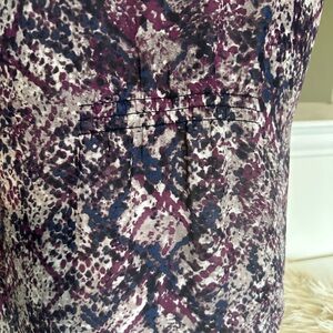 Snake print sleeveless shell with stunning colors. Discreet smocked gathering in the back give's sleek shape. Great dressed up or with jeans.
