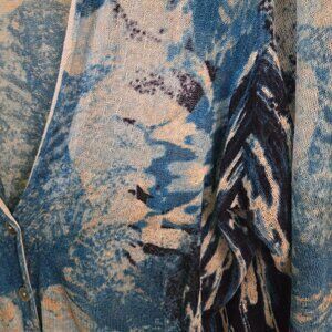 • Gorgeous Ocean Like Blue Pattern Long Line Linen Blend Cardigan Sweater