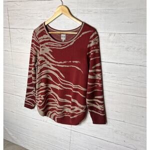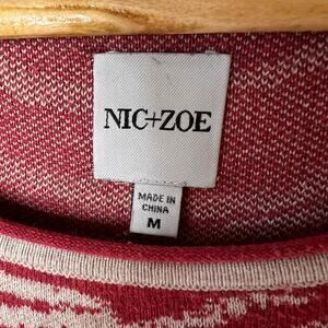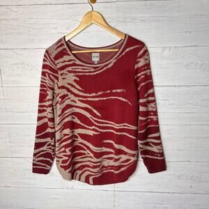 Nic + Zoe Sweater Womens Size Medium Taupe & Burgundy My Nature Cotton Blend