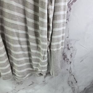 Nic + Zoe Top Womens XL Tan Black Beige Striped V Neck Long Sleeve Shirt Cotton
