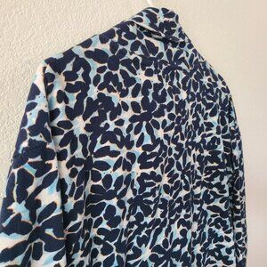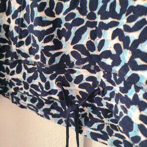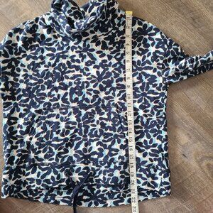 Excellent used condition US women's size PP 100% cotton mock neck sweatshirt in abstract floral pattern. Features kangaroo pocket and drawstring detail at waist. Minimal wear, no flaws to note. Approximate measurements have been provided in photos for fit.