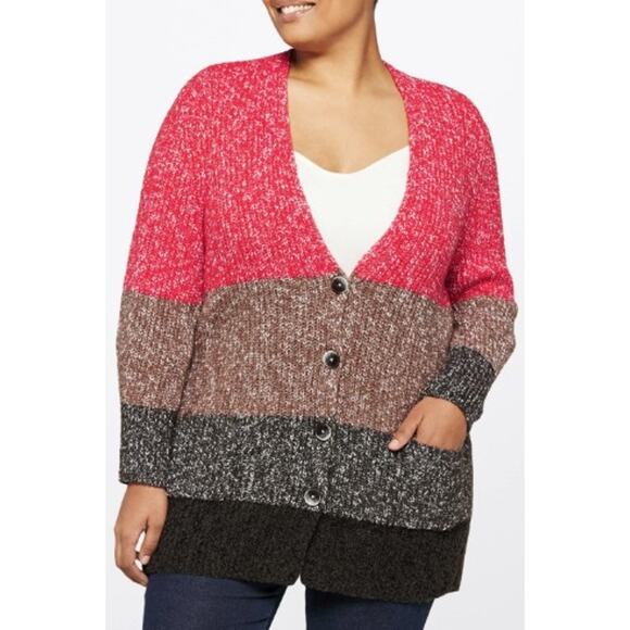 Nic + Zoe V Neck Button Front Warm Ember Cardigan Sweater Multi Striped Size XL