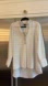 This elegant white blouse features stunning silver accents, perfect for any occasion. Its sophisticated design offers a chic and timeless look.