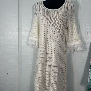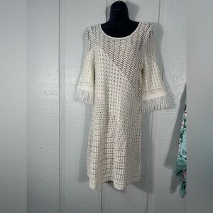 Nic + Zoe Womens Beach Strool Knit Fringe Casual Dress Ivory Size Small NWT