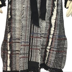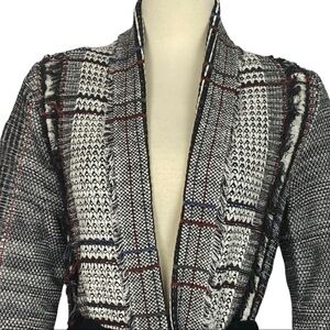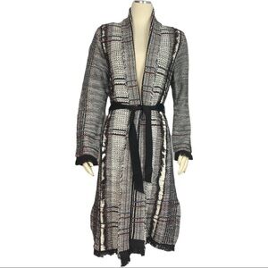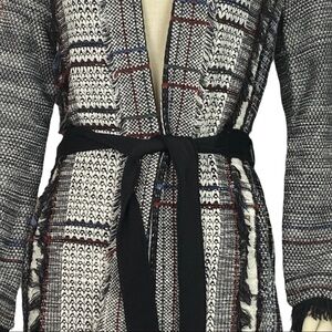 Nic + Zoe sweater duster cardigan, belted, black, white, red, blue pattern. Sold at Nordstrom. Please see pictures for more details. Measurements taken with item laying flat. Approximate measurements: