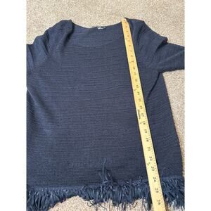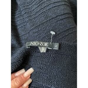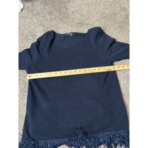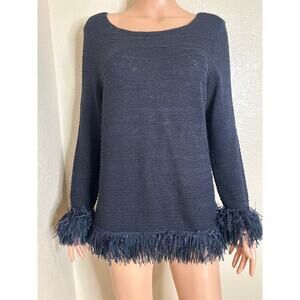 Nic + Zoe fring trim sweater long sleeve knit top black fringe cuff SZ LG