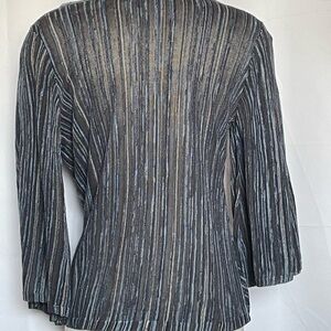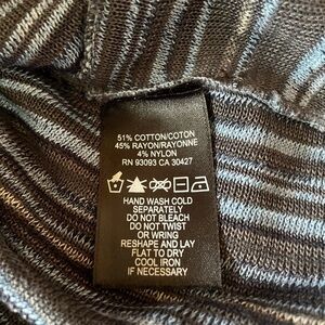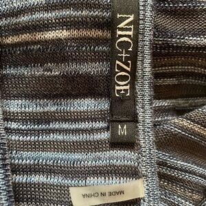 Nic + Zoe top. Blue stripes. Lightweight. Great alone or layered. Front gathers and crosses over to give textural interest
