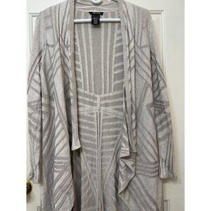 Nic and Zoe Women’s Sweater Cardigan Open Front Silver Striped Oversized Sm Long