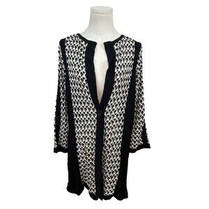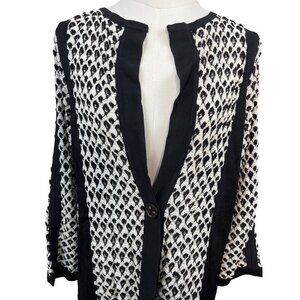 Nic+Zoe Black & White Open Front Cardigan Sweater With Button Closure Sz XL