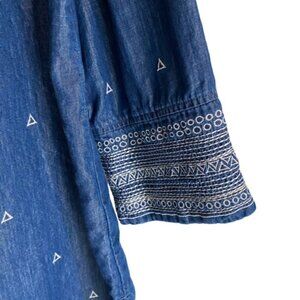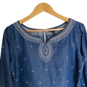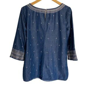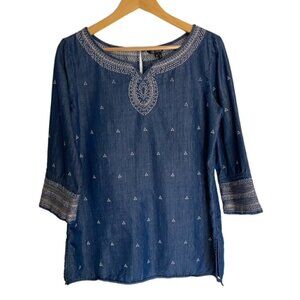 Nic+Zoe Blue & White Embroidered Tunic Top Small