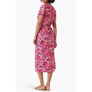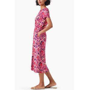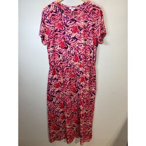 Nic+Zoe Blurred Midi Dress Women's Size Large Pink Multi Side Slit