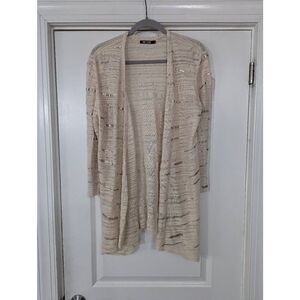Nic+Zoe Cardigan women's size Large cream silver open front linen blend tunic