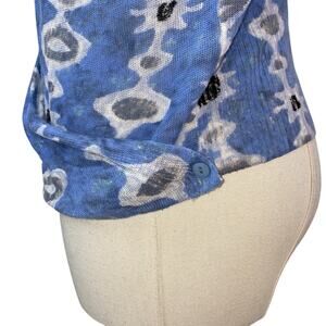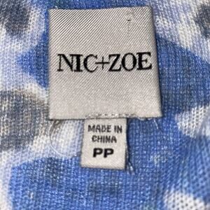 The Nic+Zoe Falling Jewels Wrap is a stylish and versatile cardigan made from a lightweight linen blend material. This V-neck sweater features a solid blue color and 3/4 sleeves, perfect for casual occasions during all seasons. Hand wash only to maintain its quality, this size PP sweater from the brand Nic+Zoe is designed for women looking for a regular fit in a comfortable and flattering silhouette. Perfect for layering over your favorite outfit, this cardigan is sure to become a staple in your wardrobe.