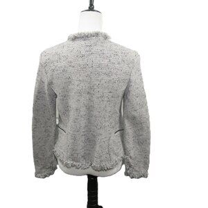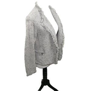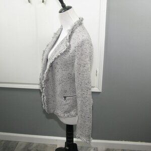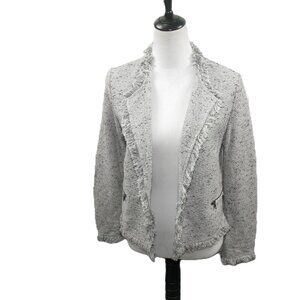 Nic+Zoe Gray Tweed Fringe Open Front Blazer Size Medium