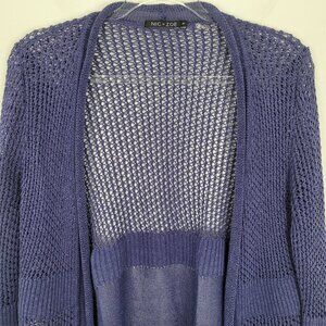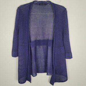 Nic+Zoe Linen Viscose Mesh Cardigan Open Front 3/4 Sleeve Knit Blue Size S