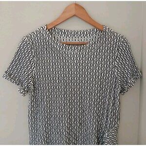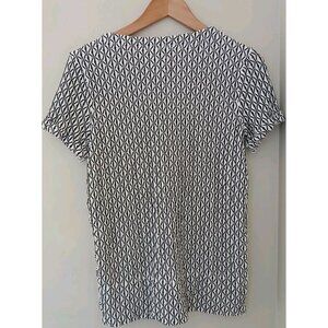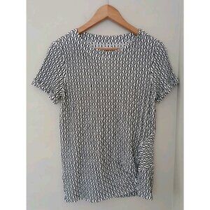 Nic+Zoe Moving Lines Short Sleeve Top. Size Small. Black and white geometric pattern. Ruched front. Work, Coastal, Artsy. Crinkle texture. In nice, preowned condition. Measures approximately 16" pit to pit, 23" shoulder to hem.