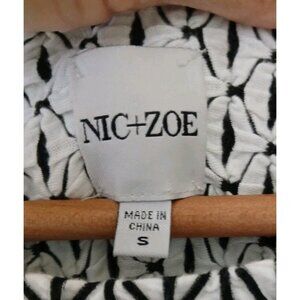Nic+Zoe Moving Lines S/S Top Size Small Black White Ruched Work Artsy Crinkle