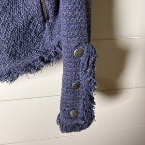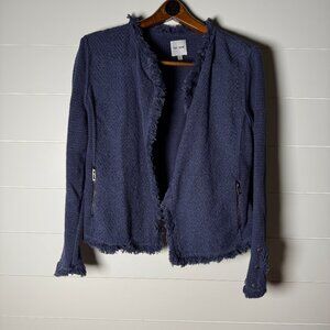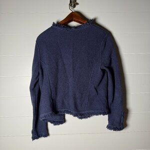Nic+Zoe Open Front Cardigan Fringe Edges Zipper Pockets Blue Size Large