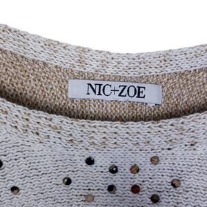 Nic+Zoe Women's Tan Canvas Beaded Sweater Size XL Retail $168. 51% Cotton, 49% Polyester. Midweight pullover sweater. Easy Fit. Bateau neck. Long dolman sleeve.