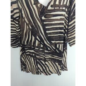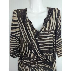 Nic+Zoe Zebra Striped V-Neck Blouse - Size PP - Cream & Brown Animal Casual Top